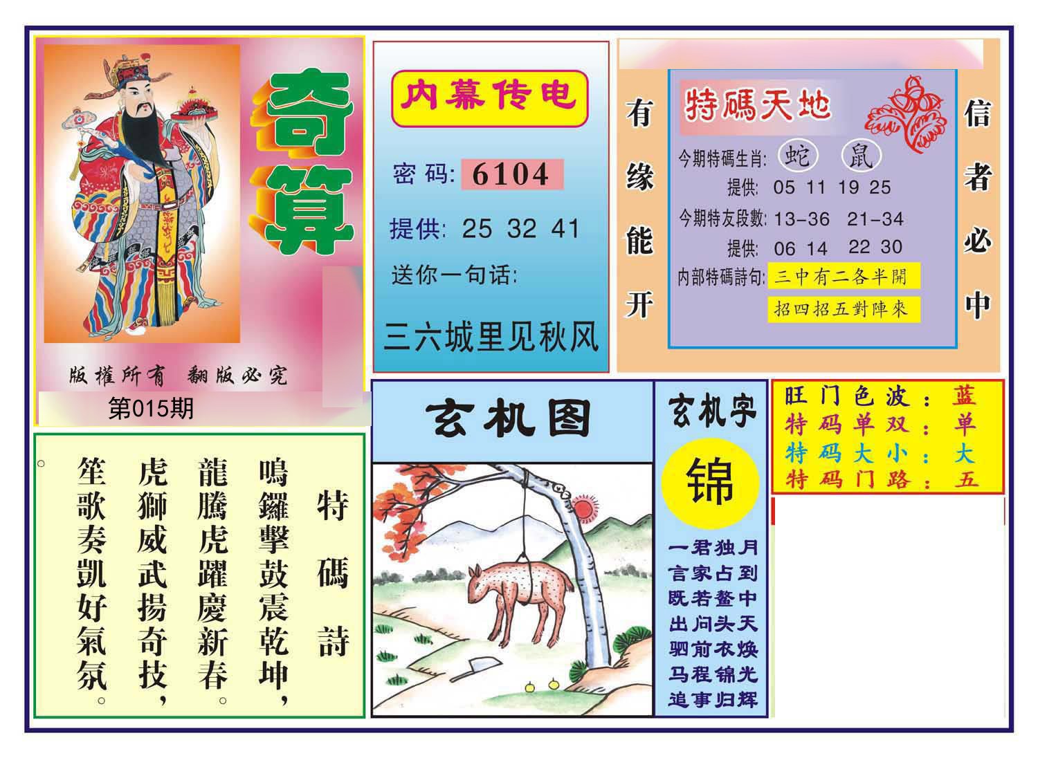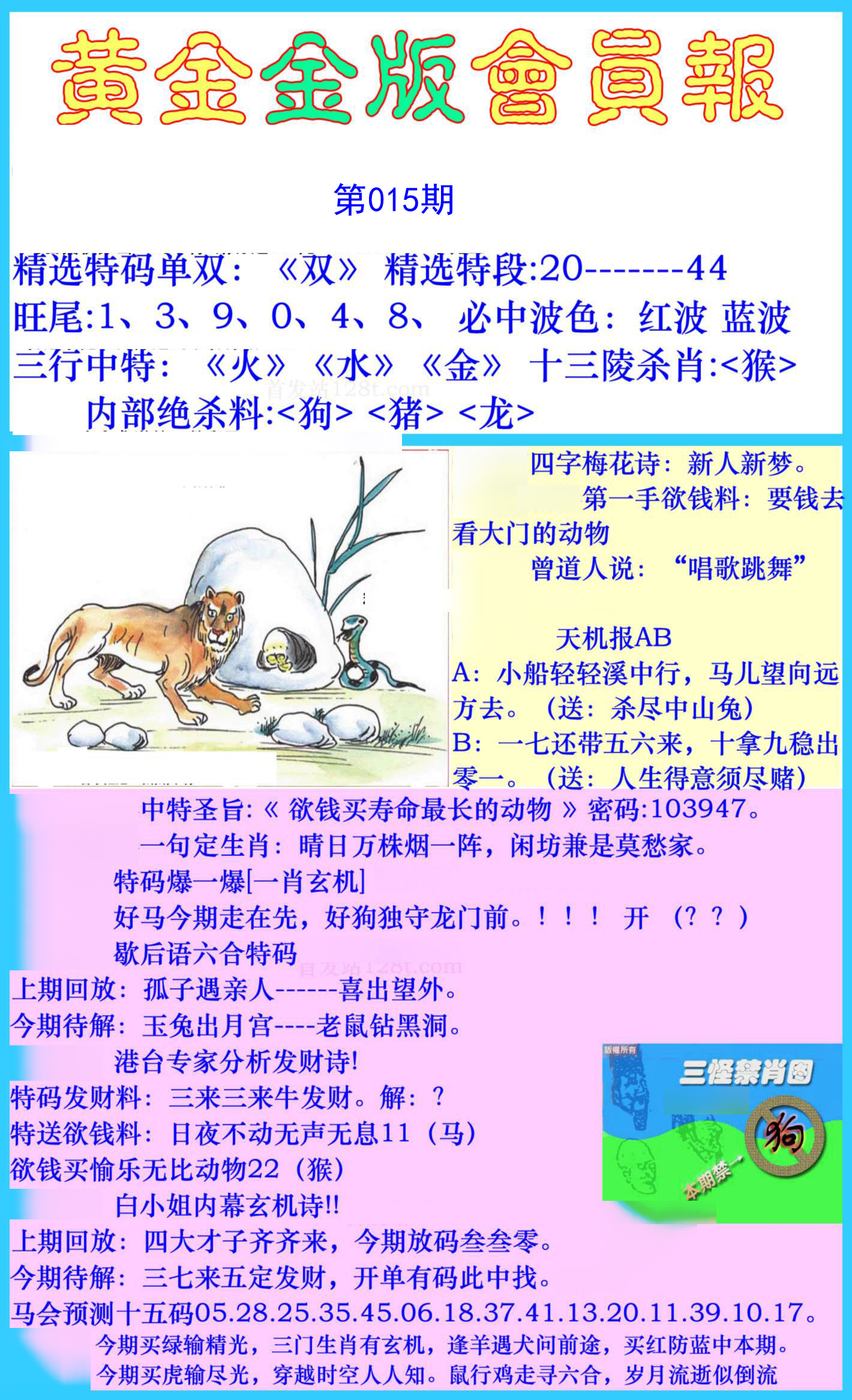 | 015期;【兔猪狗蛇鸡羊牛龙虎】开:?00 |