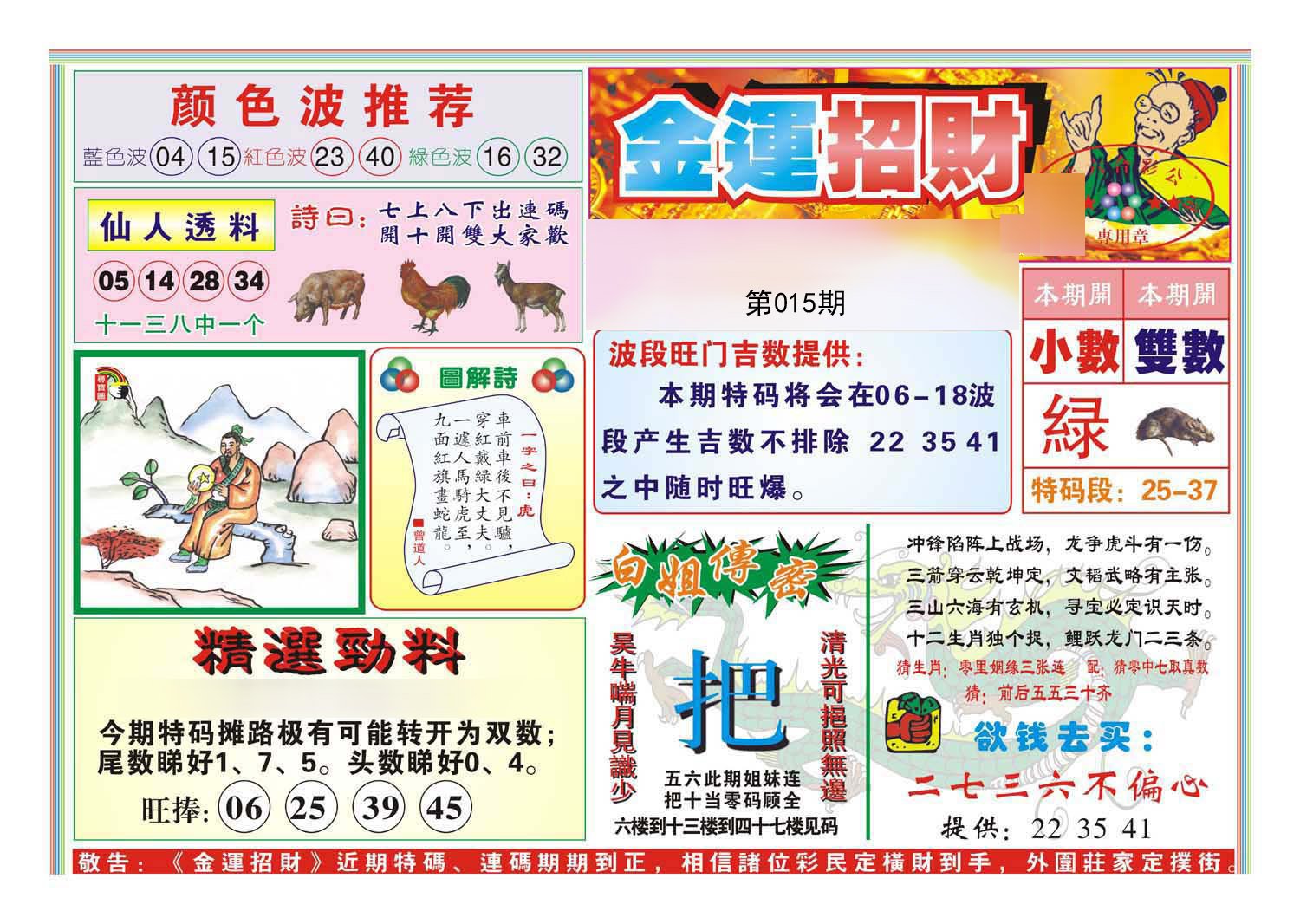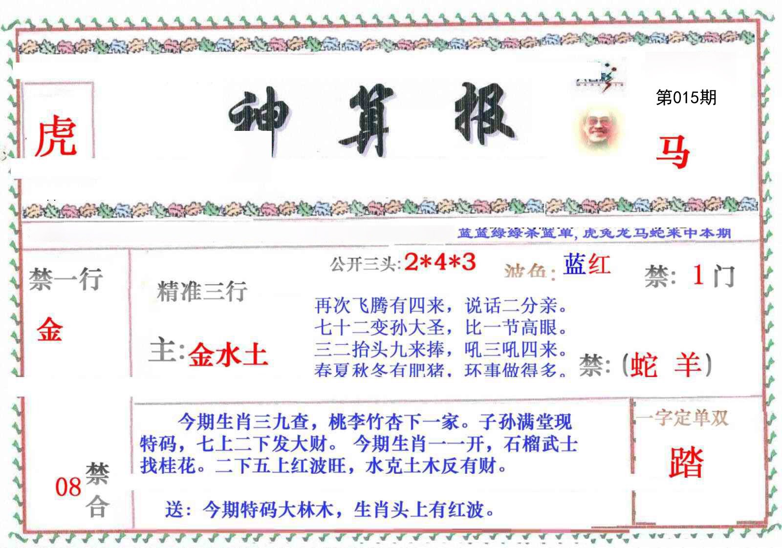 | 015期;绝杀【红波】绝杀【3头】开:?00 |